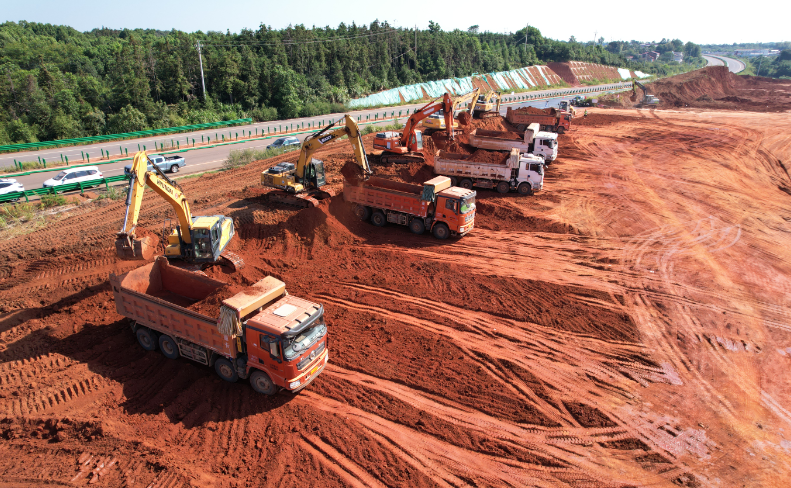 8月27日,该项目已全面完成红线内土地平整工作,挖机与重型卡车正在移除项目与107过道之间的挡土墙。中建三局咸宁国际陆港物流园一期A区项目生产经理李汪洋介绍:“目前项目建设场地平整已完成,临建办公区布置图已绘制完成并报审,预计9月底前完成搭建。”