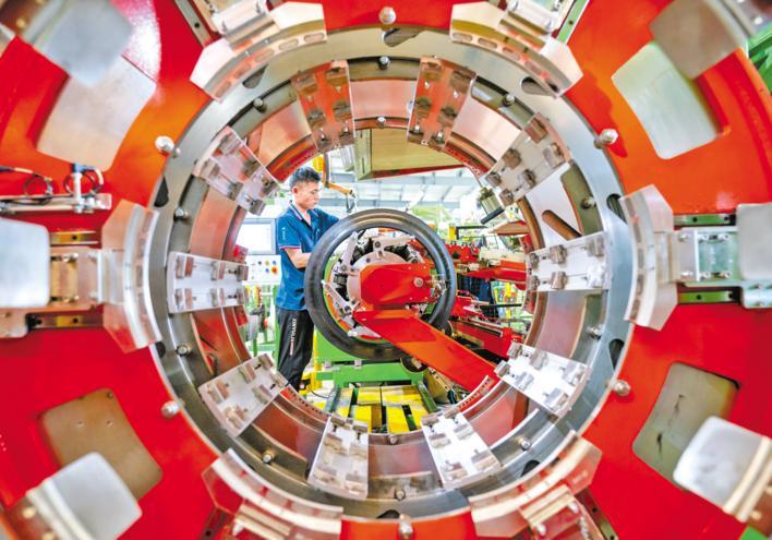 8月3日,湖北金田轮胎有限公司车间,一条条全钢子午线轮胎快速下线。该公司产品远销非洲、南美和东南亚。2022年,咸宁高新区发布新版《对外开放发展黄金十条》。数据显示,咸宁市上半年完成外贸进出口总额71.1亿元,同比增长58.9%;实际使用外资8804万美元,同比增长39.9%。