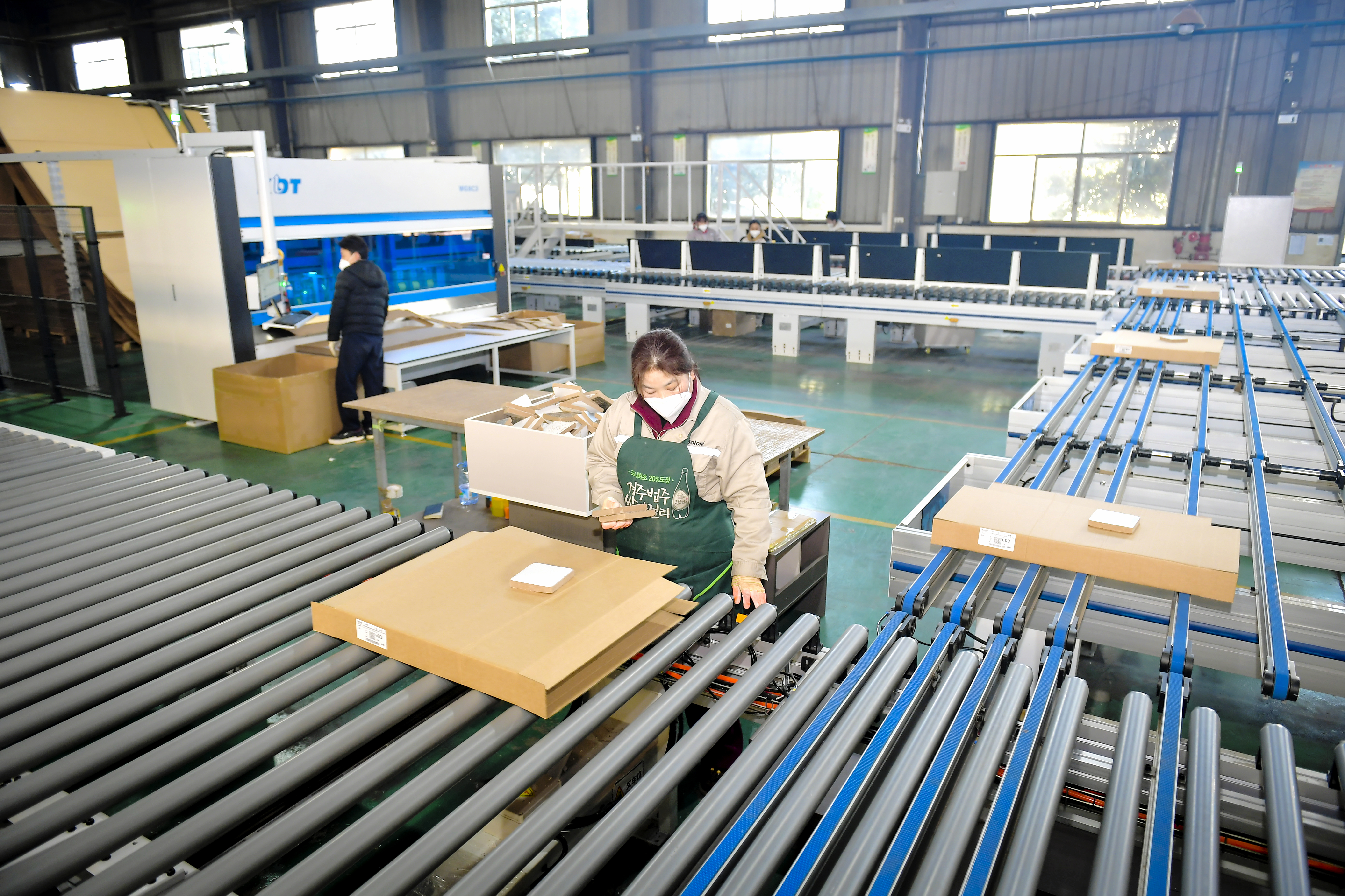 1月8日,博洛尼家居用品湖北有限公司,生产车间内工人正赶制来自海外的订单。